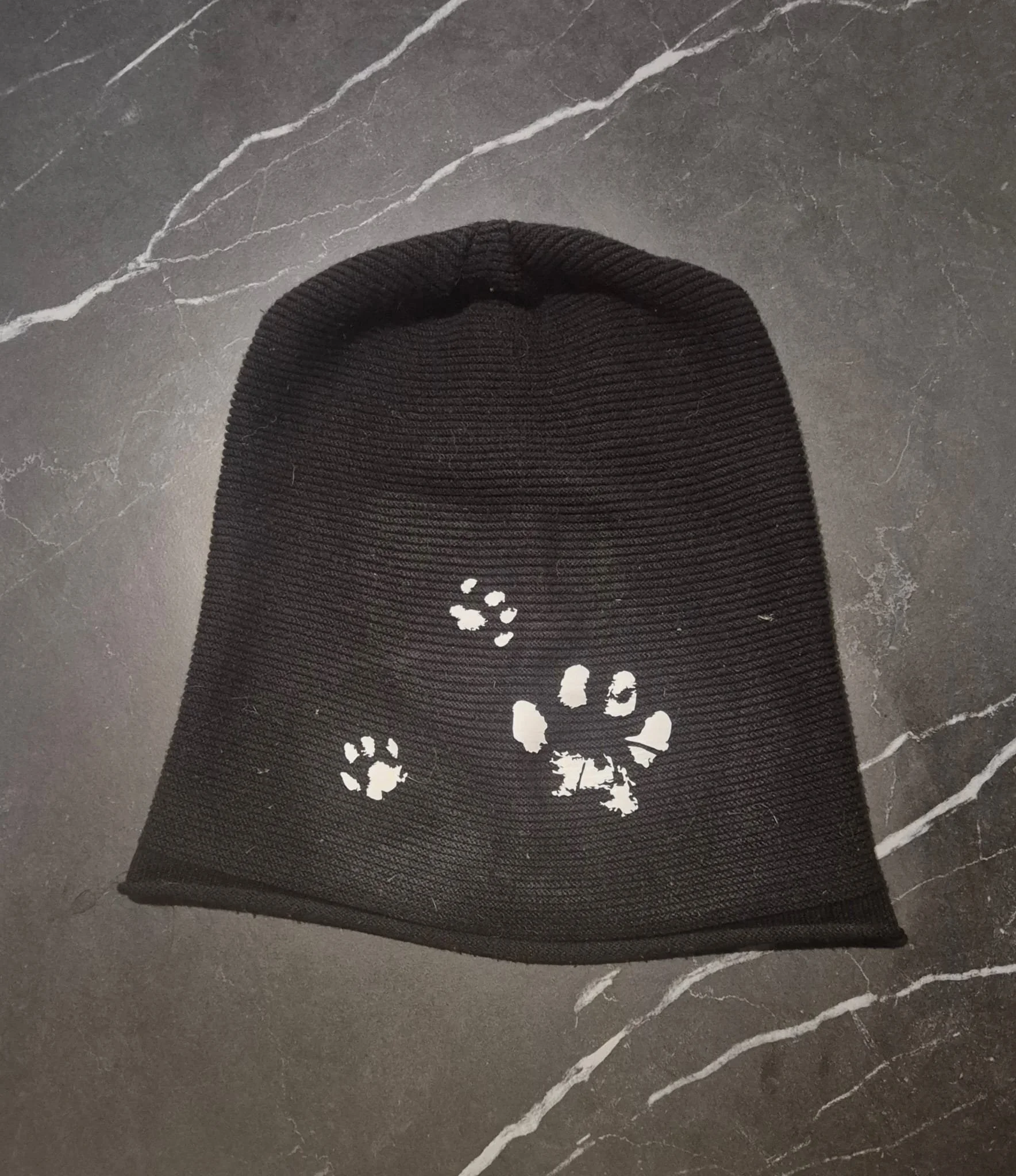 Schlicht, kuschelig, bedeutungsvoll – die Pfotenabdrücke deiner Fellnasen verewigt auf einer Beanie. Ein Stück Wärme, das Herz und Erinnerung vereint.