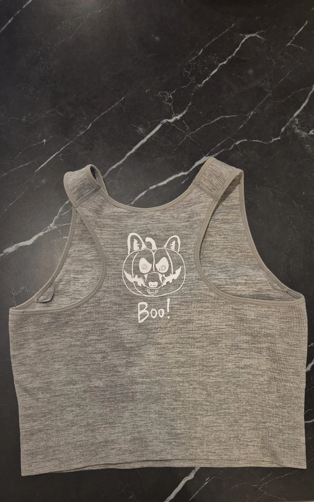 Ein verspieltes Halloween-inspiriertes Design mit Kivi als kleiner Geisterhund. Jedes Stück ist ein Unikat – mal als Shirt, mal als Top – und bringt Freude, Humor und Persönlichkeit in den Alltag.