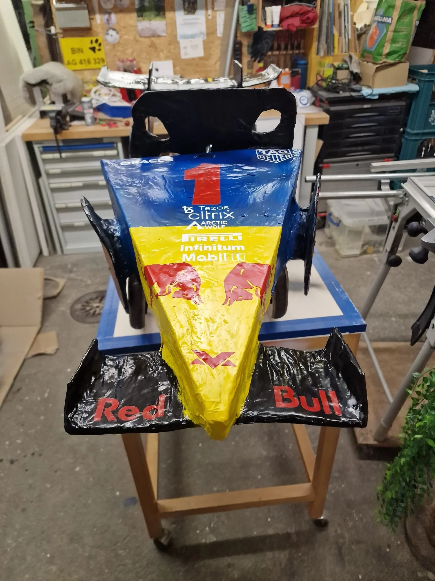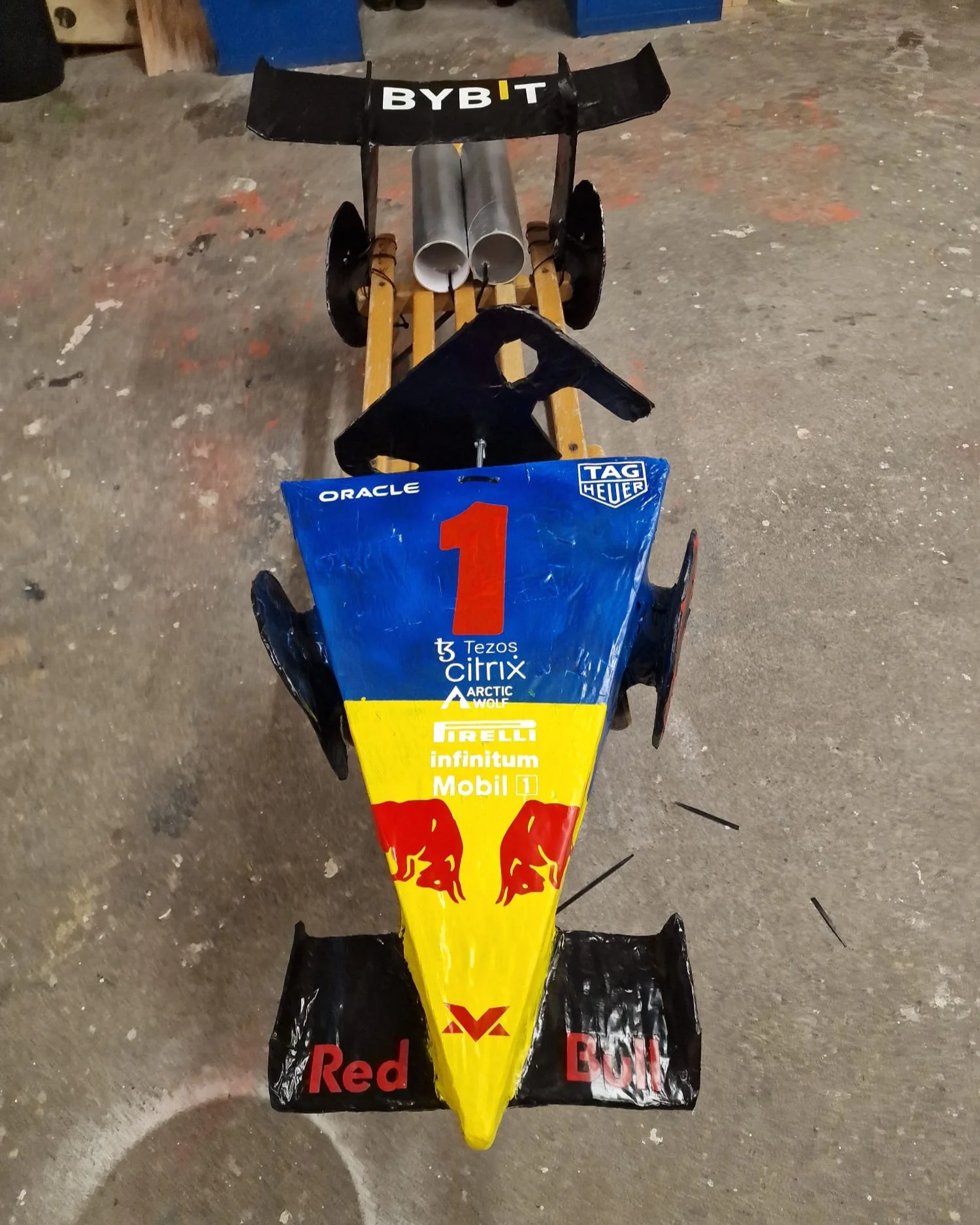 Als großer Formel-1-Fan habe ich meinen Schlitten für ein Rennen in einen kleinen „Formel-1-Boliden“ verwandelt – eine liebevolle Hommage an meinen Lieblingsfahrer.